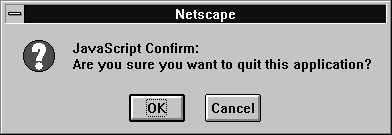 parent and top properties are references to the window itself. For a frame, the top refers to the topmost browser window, and parent refers to the parent window of the current window. defaultStatus or status property sets the text appearing in the browser status line. For a frame, setting these properties only sets the status line text when the cursor is over the frame.close method is not useful for windows that are frames.onBlur or onFocus event handler for a frame, you must set the onblur or onfocus property and specify it in all lowercase (you cannot specify it in HTML).FRAME tag contains SRC and NAME attributes, you can refer to that frame from a sibling frame by using parent.frameName or parent.frames[index]. For example, if the fourth frame in a set has NAME="homeFrame", sibling frames can refer to that frame using parent.homeFrame or parent.frames[3].self and window properties of a window object are synonyms for the current window, and you can optionally use them to refer to the current window. For example, you can close the current window by calling the close method of either window or self. You can use these properties to make your code more readable or to disambiguate the property reference self.status from a form called status. See the properties and methods listed below for more examples.
